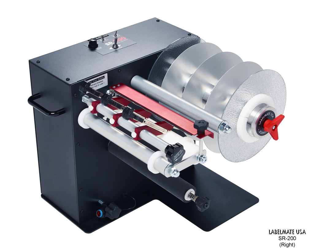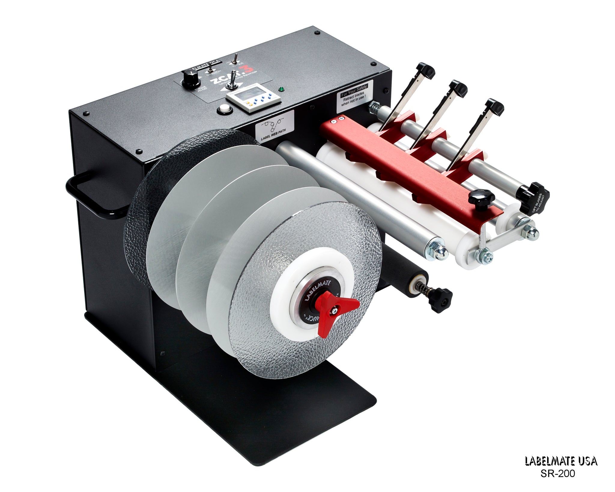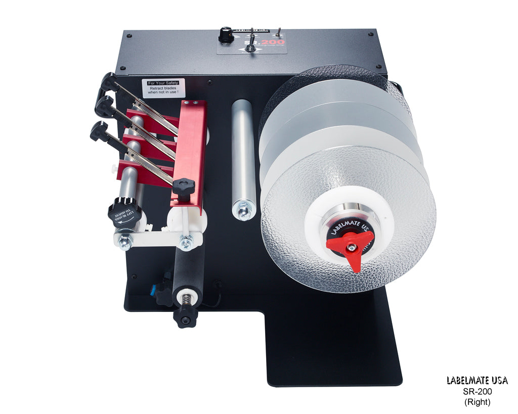 With the SR-200 In-Line Slitter-Rewinder you can slit and rewind your labels directly as you rewind them from your printer, without placing any stress whatsoever on the printer. A free-hanging “loop” of label stock is created between the printer and the SR-200 thereby eliminating all tension on the printer. An optical sensor starts and stops the rewind/slit action only when the printer is printing. Fully-adjustable tension exists between the tensioning roller of the Slitter and the take-up shaft of the Rewinder, thus yielding consistent and tightly wound finish rolls. Add up to two (2) additional blades!